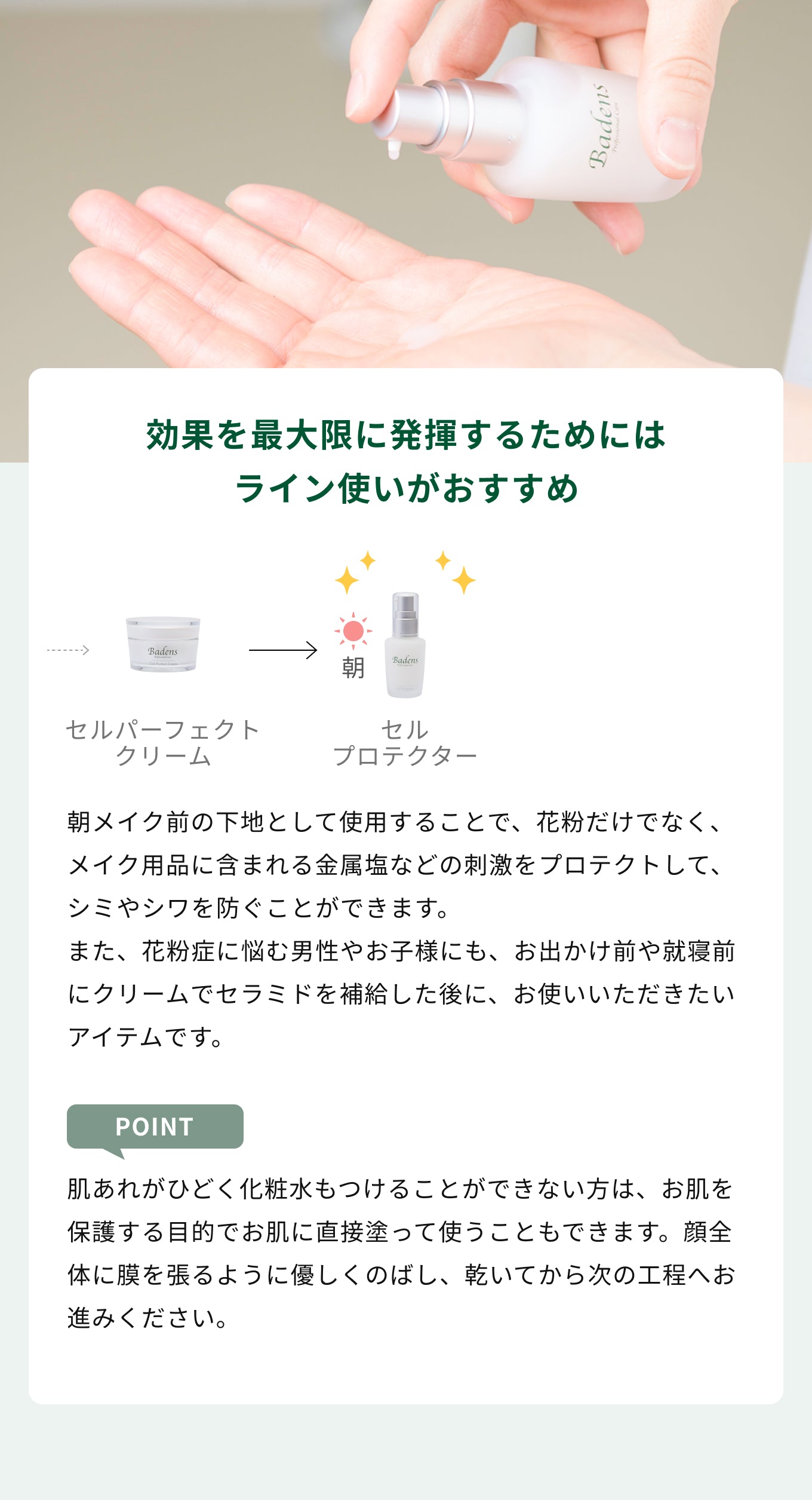 セルプロテクターはお肌に欠かせないセラミドを何重にも重ねた高機能タイプを使用しております。