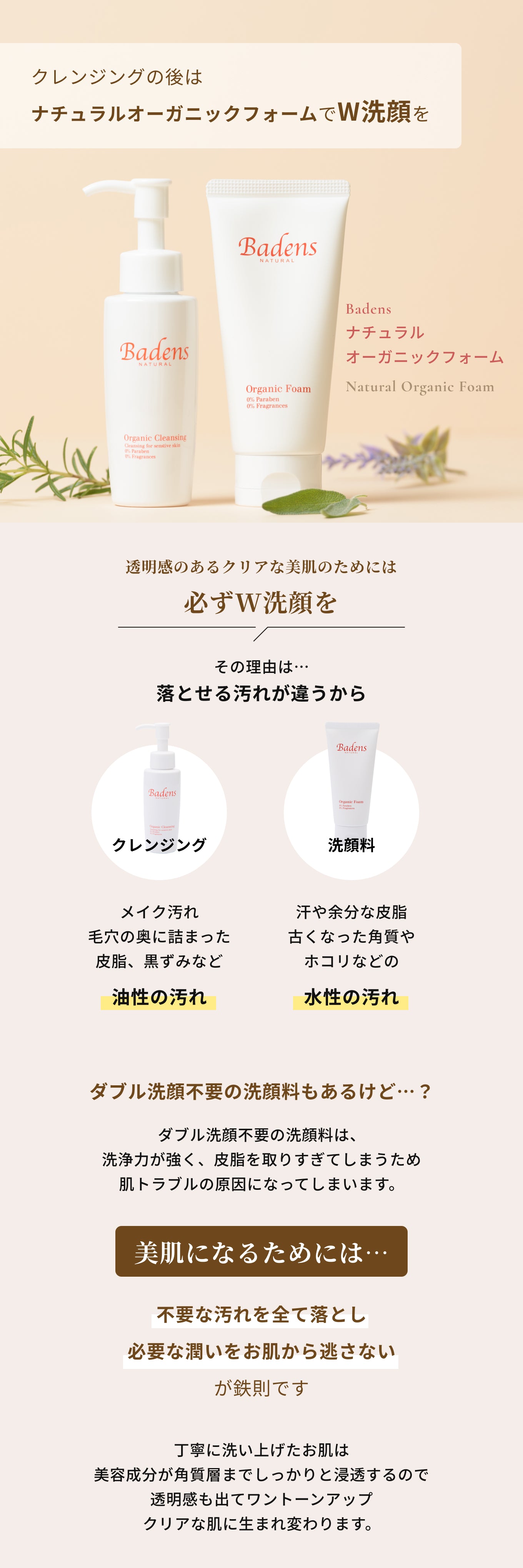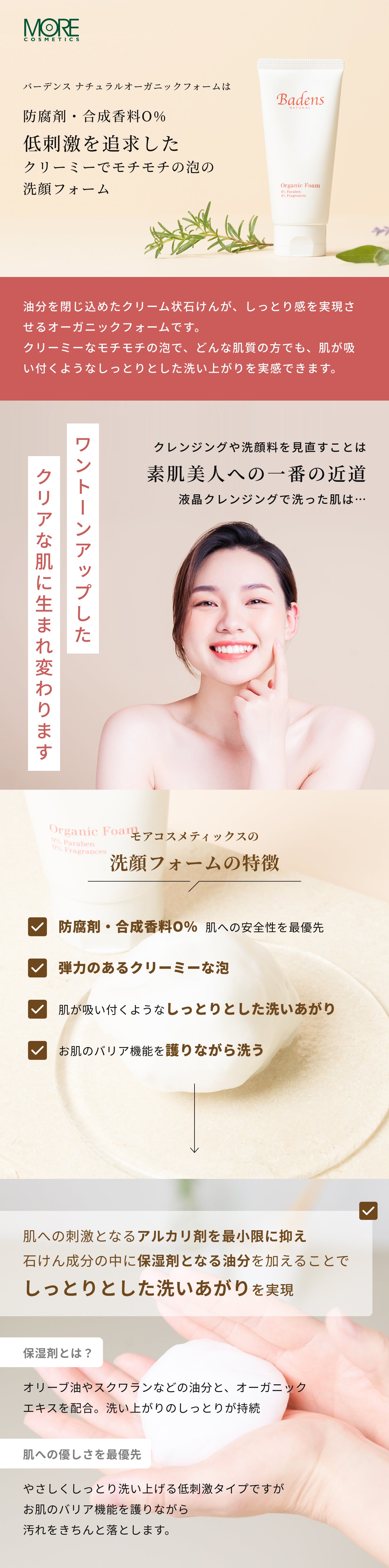 バーデンスの洗顔フォームは、弾力ある泡で低刺激処方です。