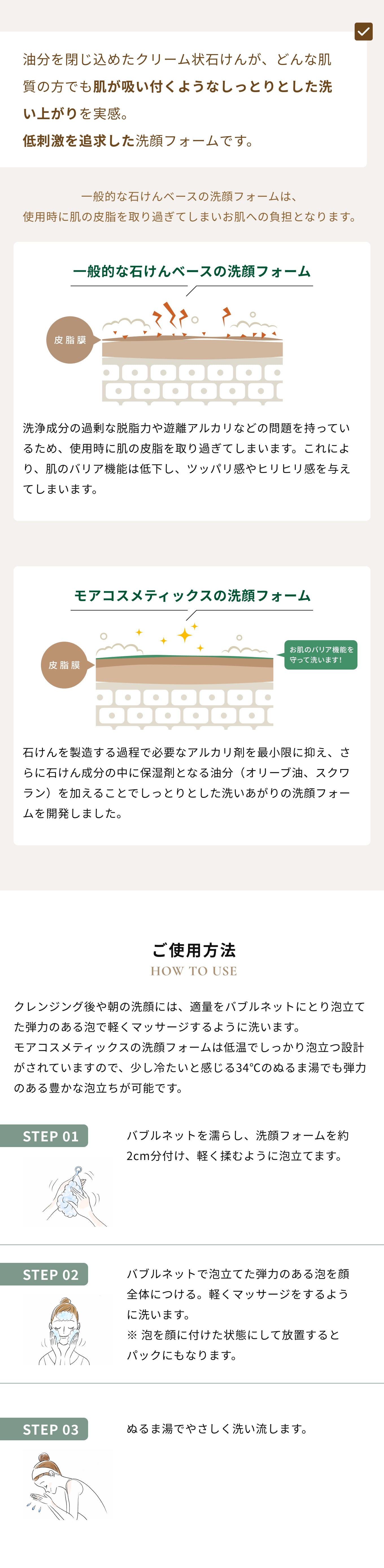 私は敏感肌ですが、洗い上がりも突っ張らずしっとりして使い心地がとてもよかったです。- › モアコスメティックスオンラインショップ